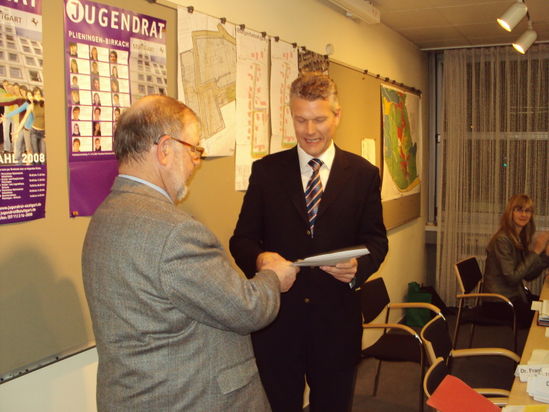 Am 09.11.09 fand die erste Sitzung des neugewählten Bezirksbeirates Birkach-Plieningen statt. Die ausscheidenden Bezirksberäte wurden verabschiedet so auch SPD-Bezirksbeirat Klaus Burgstahler der für seine fast 40 Jährige Mitarbeit in dem Gremium geehrt wurde. Der Ortsverein gratuliert und bedankt sich bei Klaus Burgstahler ganz herzlich für die langjährige Arbeit im Stadteil!